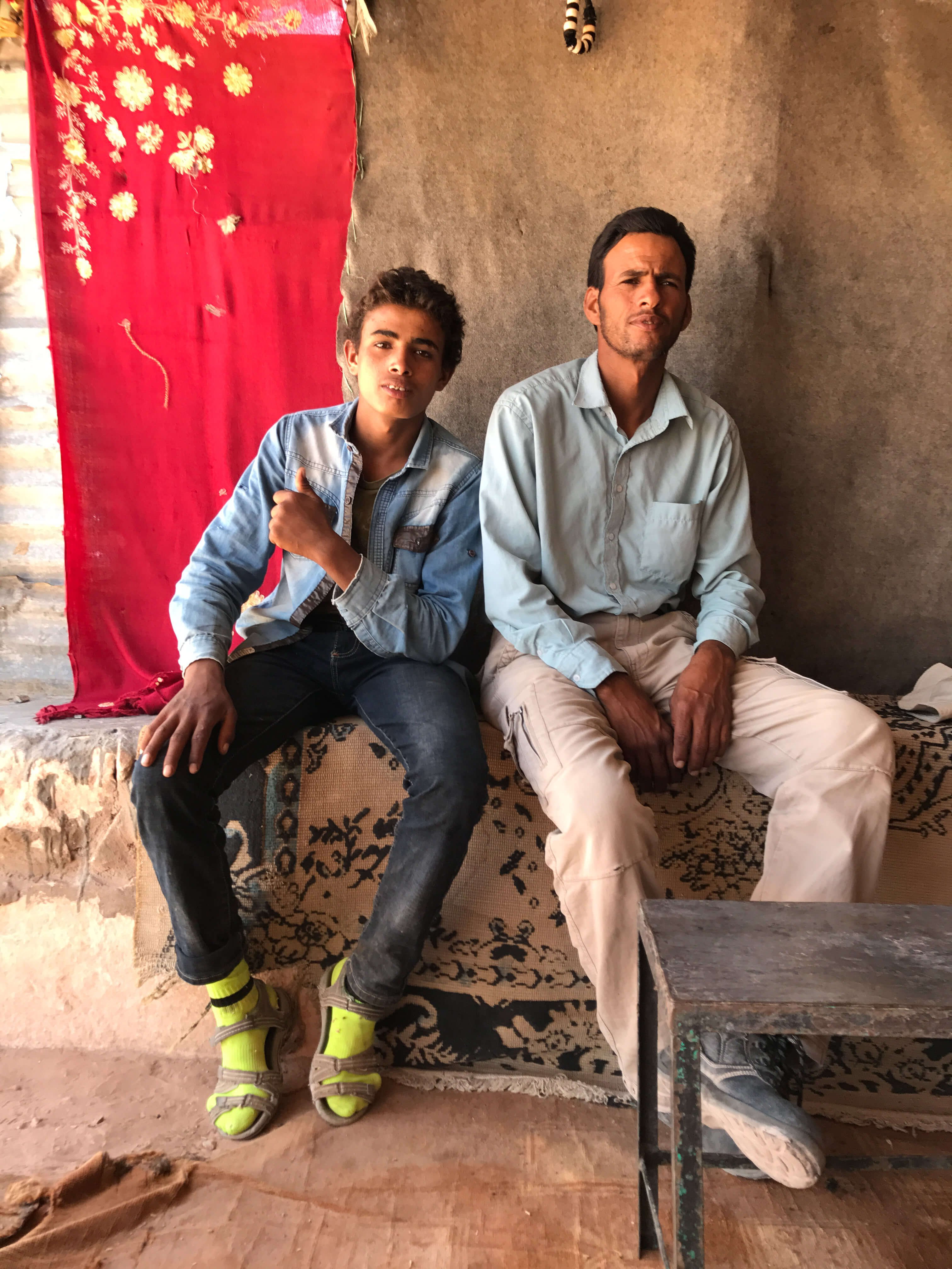 Beduin in Petra: Two Beduin greeting visitors in one of the caves in Petra, Jordan