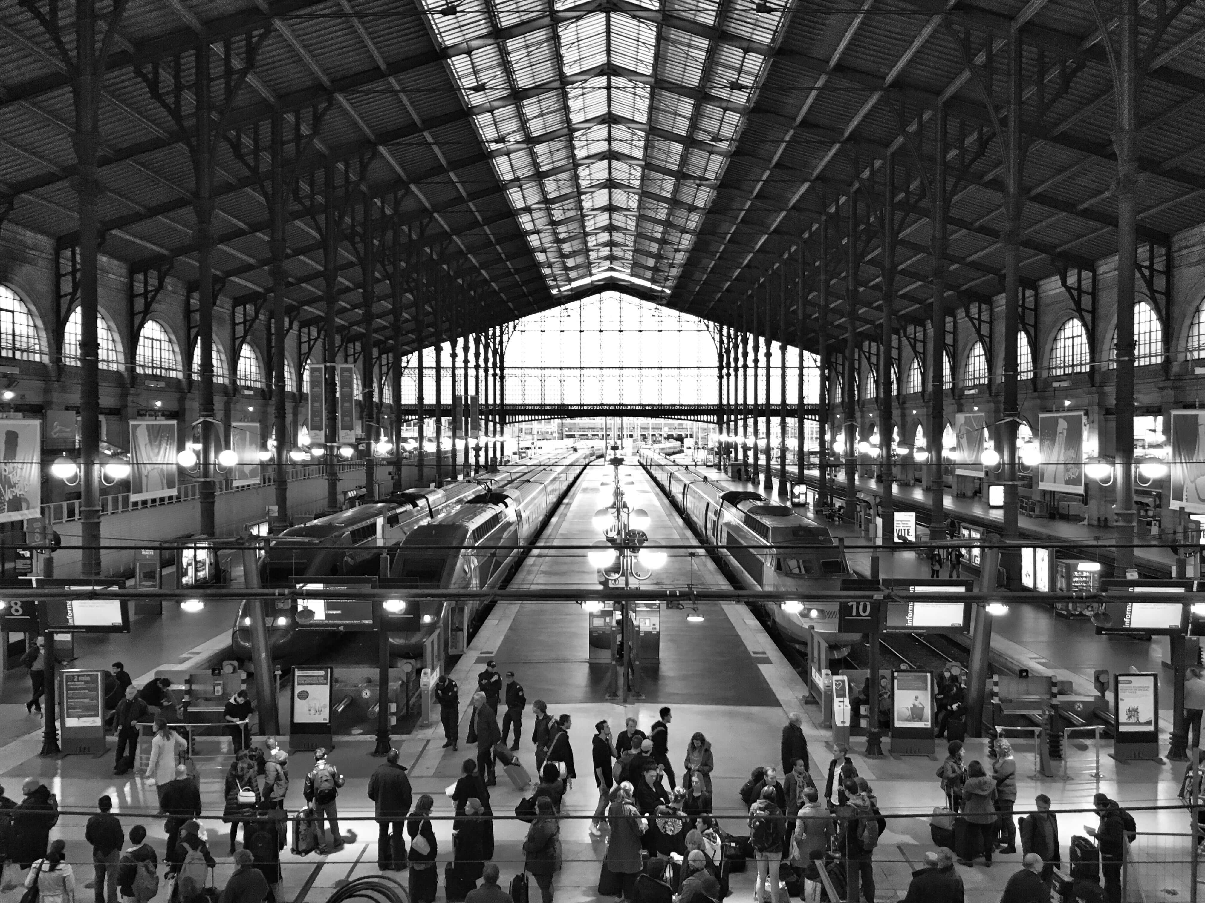 Gare du Nord, Paris, on the day after the November 2015 shootings: The atmosphere was subdued the following day. An English friend who was staying decided to go back early, as did many other British visitors, seen hastening onto the train to take them home.